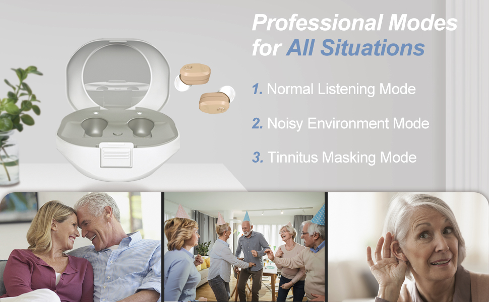 Almost Invisible – Much smaller and more discreet than traditional digital hearing amplifier, and no pull line on the outside. This hearing aid device fits snug in ear canal. No one will notice that you’re wearing them.