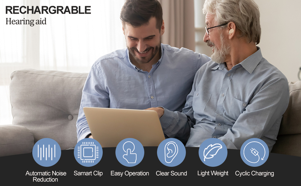 Fast Charging & Long Running Time – With a 2 hours fully charging time, the hearing amplifiers can be used for 50 hours. No need to charge the device every now and then. The compact charging box also works as storage box to prevent the small hearing aids from losing.
