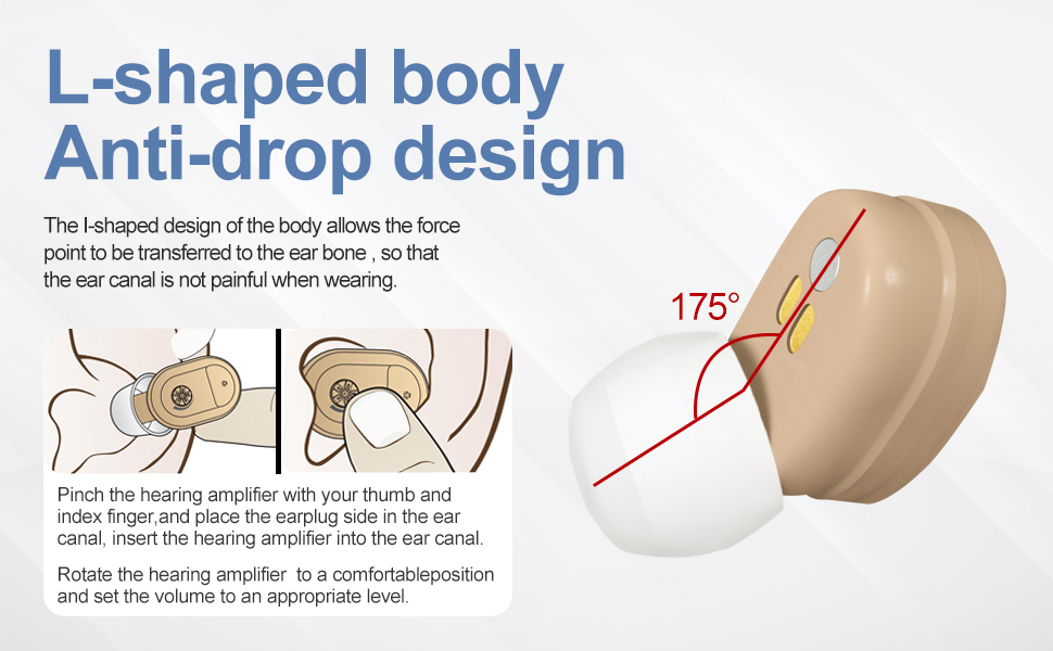 Easy Operation – Features smart ear detection technology, it will power on automatically when detecting device in ear canal and power off once removed. Sound volume can be adjusted by finger easily. Each hearing aid is universal to use. No need to distinguish left or right.